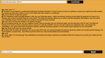 HTTP note: If you serve your game over plain HTTP (e.g. a LAN IP during development), model caching is disabled and the model re-downloads on each page load. The extension handles this automatically — no crash, just slower cold starts. Use HTTPS for production.